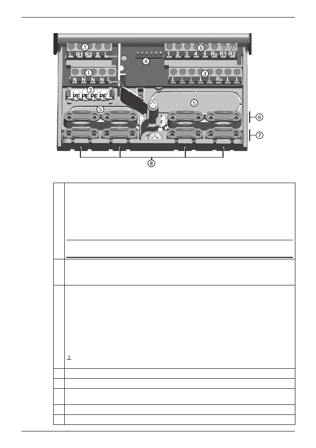Fig. 3: bornes de raccordement dans la partie inférieure du régulateur (cache-bornes retiré)